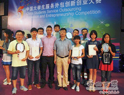 兰州商学院在第五届中国大学生服务外包创新创业大赛中获奖 近日,由教育部、商务部和无锡市人民政府共同主办的2014年第五届中国大学生服务外包创新创业大赛在江南大学落幕。此次大赛吸引了来自清华大学、上海交通大学、台湾大学、香港理工大学等230余所高校的近450支代表队报名参加,参赛学生数同比增长140%,创历届新高。 兰州商学院组织代表队参加比赛,这也是该校首次参加该项赛事。在校团委的积极组织和专业教师的悉心指导下,该校代表队成功闯入全国决赛,是甘肃省进入全国决赛的两所高校之一。最终,兰州商学院三支团队分别在“企业命题类”、“自由命题类”和“创业实践类”比赛中获得三等奖。 赛场留影