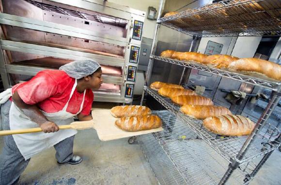 (华盛顿的Union Kitchen的平面图) 厨房孵化器可以帮助创业者节约空间和人员的成本,同时在和政府扯皮(也就是办理各种证照、应付各种卫生检查)上他们帮着挡了很多枪子,关键是它也许能帮助创业者从一个家庭小作坊迈向专业的生产和经营,这一步其实是大多数创业者奇缺的(尤其是现在这么多跨界创业的)。 一个运营良好的孵化器会将工作于其中的创业者聚合成一个活跃的社群,也有机会通过自身的平台属性,把创业者和超商、餐厅、酒店乃至投资人等“大金主”连接在一起。 下面是一个成功的孵化器故事,这个孵化器原本也是其他孵化器里的一个蛋,但后来它自己又孵出了更多的蛋。 来自纽约Harlem区的Hot Bread Kitchen(以下简称HBK)自2011年成立以来,已经为超过120家小企业提供过服务。 它的创始人Jessamyn Rodriguez从联合国离职之后,最早只是开了面包店,但其雇员都是城市低收入女性,在面包店她们学习专业技能并得以谋生,甚至日后还有单飞出去开店的成功案例,而她们也带来老家的手艺帮助面包店拓展品类。这个非营利机构生产的面包可以在Whole Foods等零售商处见到,但渐渐地创始人发现,并不是所有人都适合走上企业家的道路,而且虽然她们背后都有感人的故事,但故事最终并不是帮助提升销量的万能药。因此它需要换一个路子来走。