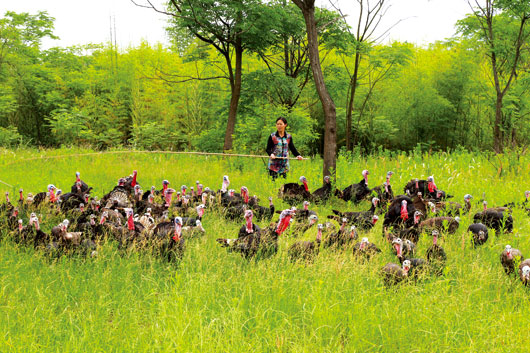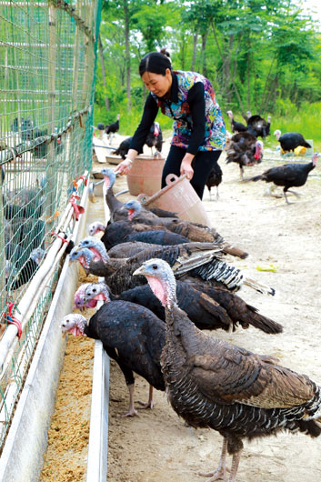 几经考虑,方云琴夫妇决定养殖火鸡。随后夫妻俩花费十多万元在村附近一小树林里建起长40米、宽15米的院子,从北方进了150余只火鸡种鸡。本以为养殖火鸡非常简单省事,只需放养在小树林让其自由自在捉虫吃,一天两顿按时喂养即可,可真正做起来,方云琴发现需要做的工作不止这些。
