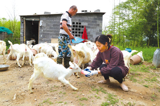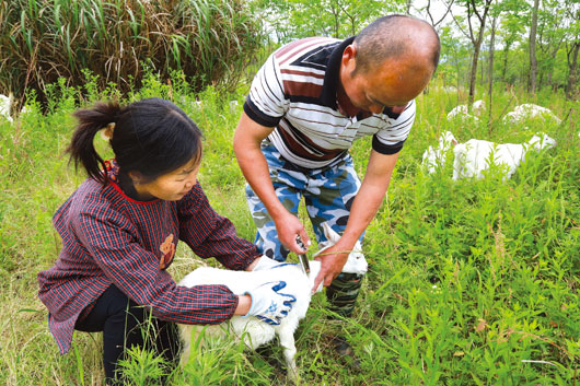 跟鸡啊羊啊相处久了,自然也了解了它们的习性,碰到偶尔感冒、拉肚子的小羊,丈夫何礼跃也会自己给它们打打针。