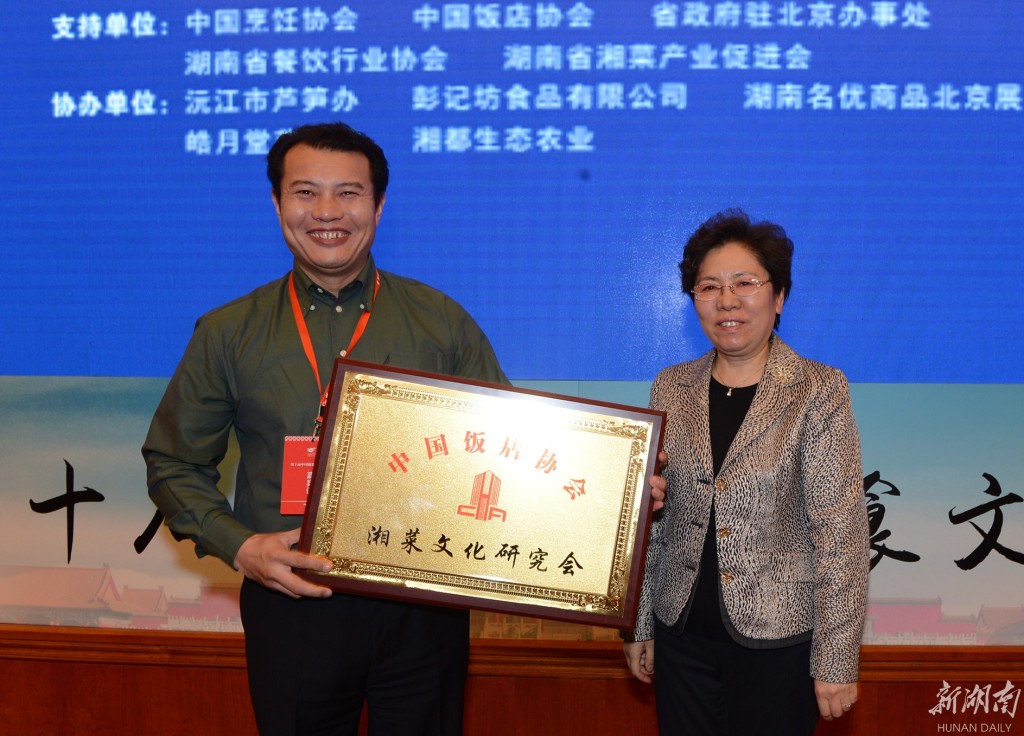 会上,省领导陈叔红为北京湘菜协会,中国饭店协会会长韩明为湘菜文化研究会授牌。