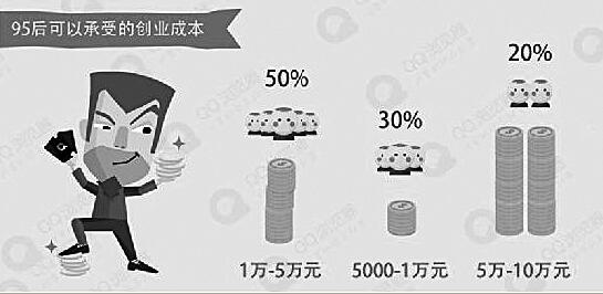 在国家“大众创业、万众创新”精神的提倡下,加之国内风生水起的互联网市场,一个个造富神话吸引着众多“95后”加入互联网创业的大军。报告显示,除求职就业(52%)、学习深造(21.43%)外,自主创业(15.31%)成为大学生就业新途径。将近一半的“95后”将创业目光紧紧锁定海淘、O2O、自媒体等新兴互联网创业项目,高薪科技创业项目也较受欢迎,并且越来越多的“95后”开始尝试农业创业,用自己学习到的先进知识反哺家乡。 数据报告还显示,“95后”能够接受的创业成本主要在5000元-10万元之间,其中1万元-5万元的接受人群最多,达到调查人群的50%。对于经济基础几乎为0的“95后”来说,“低创业成本”也是他们选择互联网项目的一大重要原因。(记者 李淼) 作为最先进的生产力之一,随着“互联网+”政策方针的逐步推进,互联网创业将成为我国社会发展的大趋势。除了行业广阔的发展空间、诱人的薪酬福利,更与互联网产业人性化的运营风格有着密切关系,“95后”作为互联网原住民,互联网行业灵活、人性化的氛围恰好迎合了这一代人自由、开放的性格特质。因此,互联网创业项目成为最受欢迎的“吸纳大户”也就不难理解了。 报告同时指出,每一代人都有自己的择业观——“70后”追求稳定“铁饭碗”,“80后”奉行实用主义,看重职业发展,而“95后”则爱高薪更爱自由。