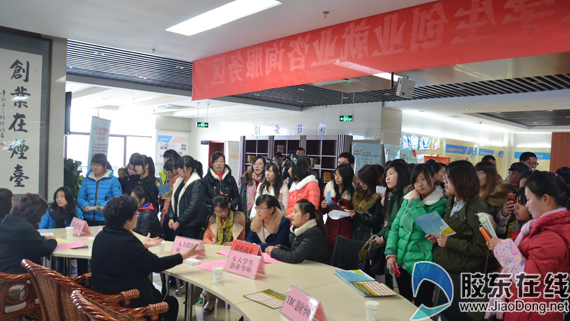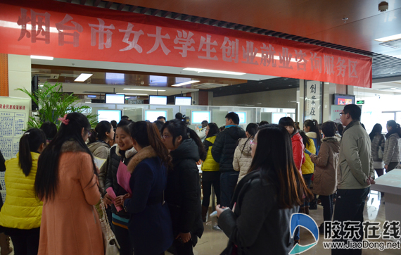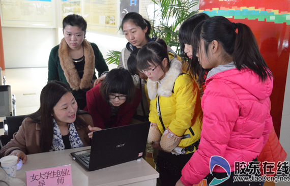 胶东在线网3月4日讯(记者 孙宗顺)4日,由烟台市人力资源和社会保障局、市妇联主办的烟台市女大学生创业就业关爱行动暨女性专场招聘会在市人力资源市场举行,女大学生创业就业咨询服务专区前吸引了众多即将毕业的大学生,学生们向导师交流创业打算,认真听取导师提供的指导意见。