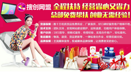 随着互联网的快速发展,现在在网上创业已经不再新奇了,可是想要赚钱还是要选择一个好的平台才对,不能盲目的选择,定要细心挑选。加盟搜创网盟商城 万种商品免费铺货 只为你创业一路无忧。 搜创网盟采用全新的B2C模式,联合数千家商品生产厂家,以优惠的价格直接供货到商城,有些出口转内销的产品甚至大大低于成本价,让消费者真正享受到物美价廉的网购体验,自然逆市而销。959