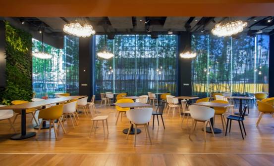 INNOSPACE+内景(该照片由Gensler提供) 在中国的路演项目中,有致力于解决VR人机交互问题的 “This VR“,可自由选择视角的3D视频摄像系统“浪走”,也有实时美颜彩妆的自拍类摄影软件“无他”,以及大咖明星背书的个性化定制耳机“D·ears“和为企业提升用户活跃度及新增盈利点的游戏化方案实践领导者“魔橙”, 其中蕴含的精彩创意令人目不暇接。 INNOSPACE+内景(该照片由Gensler提供)