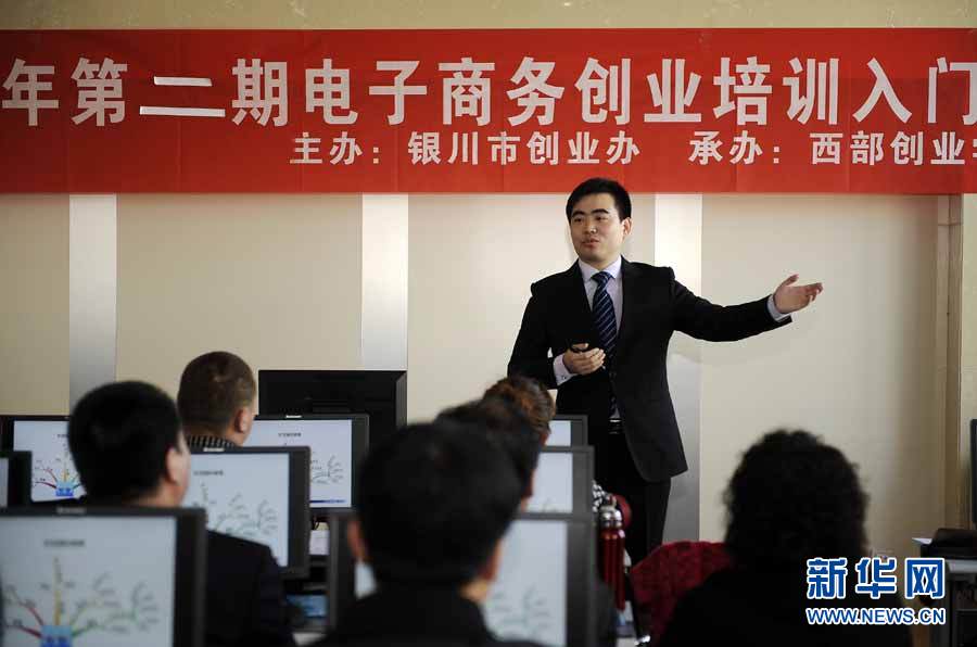 3月13日,授课老师在向学员讲授电子商务基本规则。近日,宁夏银川市举办2014年第二期电子商务创业培训入门班,共有62名学员参加了网络推广、微营销、电子商务实训等课程的培训。据了解,今年年初,银川市启动为期3年的电子商务创业培训项目,计划培训入门级、专才级和精英级电子商务创业人才1万名,以解决银川目前网络创业与企业发展普遍面临的电商人才缺乏问题。新华社记者 李然 摄