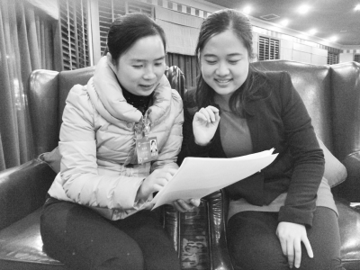 图一:正在讨论大学生村官创业报告的李欣蓉(右)和梁丽娜(左)。 (责任编辑:admin) |