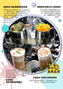 原标题:创业加盟,奶茶加盟 打工不如开店 成就人生赢家如果您有足够的远见,一定会看到中国千亿餐饮市场,每年的营业额在持续飙升中!民以食为天,富裕的中国人会更加把精力花在吃喝上。餐饮市场会有极为广阔的前 品质永远是饮食业的第一要素,营销其次。二者紧密联系,缺一不可。奇菓元素主打天然新鲜奶茶,集合了果饮、茶饮、五谷、甜点等20大系列丰富的产品线,为现代人打造一个更为清新、健康、多元的奶茶品牌。奇菓元素独特鲜明的品牌标识和明亮干净的卖场,已成为中国便利饮品市场上的潮流的风向标。加盟热线加盟咨询3391949643。