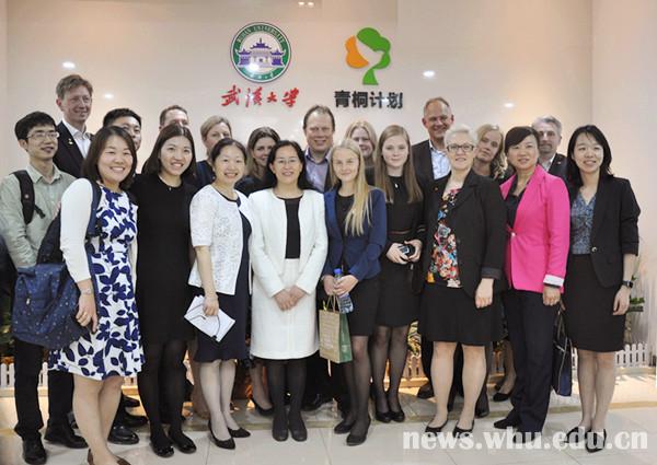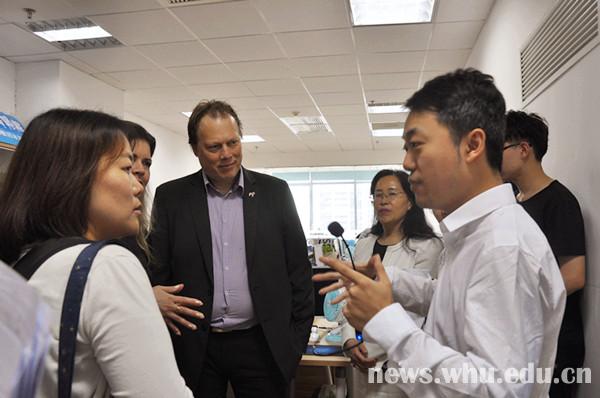 新闻网讯(记者周丽园)5月22日,瑞典达拉纳省省长阿贝罗思腾(Abdon Fredrik Ronsten)、副省长索菲亚卡尔(Sofia Jarl)率青年代表团一行15人来校考察,旨在推动青年交流合作项目及创业领域进展。校党委副书记赵雪梅出席相关活动。 在珞珈创意园,武大教育发展公司相关负责人介绍了园区概况及软硬件条件。随后,罗思腾一行参观了创意园内的大学生创业企业湖北思琴智能装备有限公司、武汉柒水科技有限公司等。