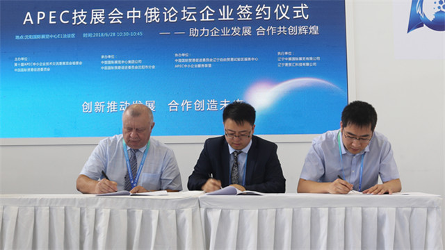 6月28日,第十届APEC中小企业技术交流暨展览会中俄论坛企业签约仪式在沈阳国际展览中心举行。 2018-06-29 10:58:31 星期五