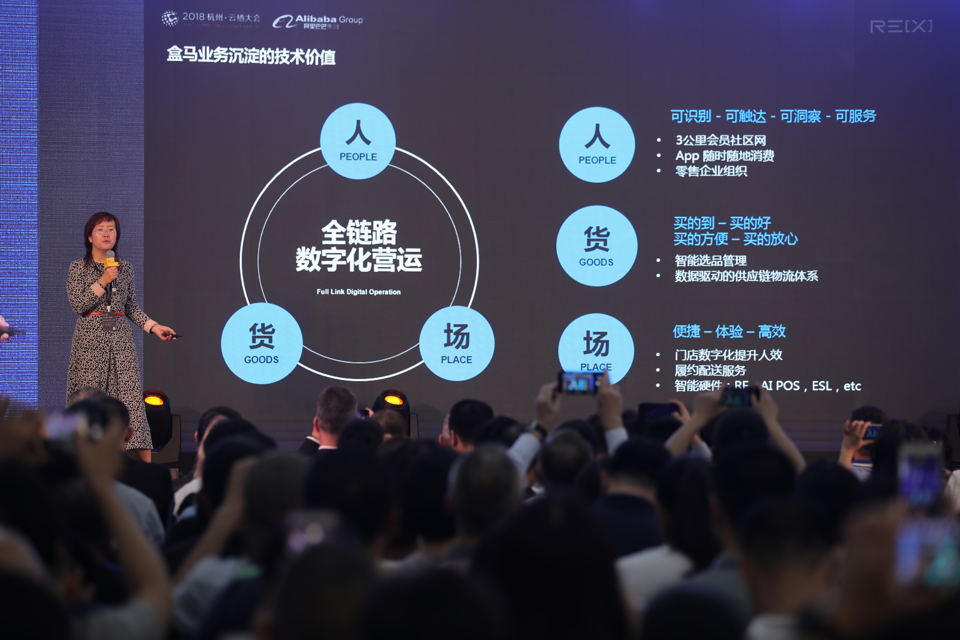 盒马CTO王曦若 阿里巴巴集团副总裁、盒马CTO王曦若说,盒马已实现端到端打通的实时库存。也就是说,哪怕消费者线上下单买的“日日鲜”蔬菜还在运输车上,依靠精准的预测,盒马也能在30分钟内将商品配送到家。 据介绍,无论是基于消费者的运营管理,还是内部营运管理,ReXOS都将对行业全面赋能。
