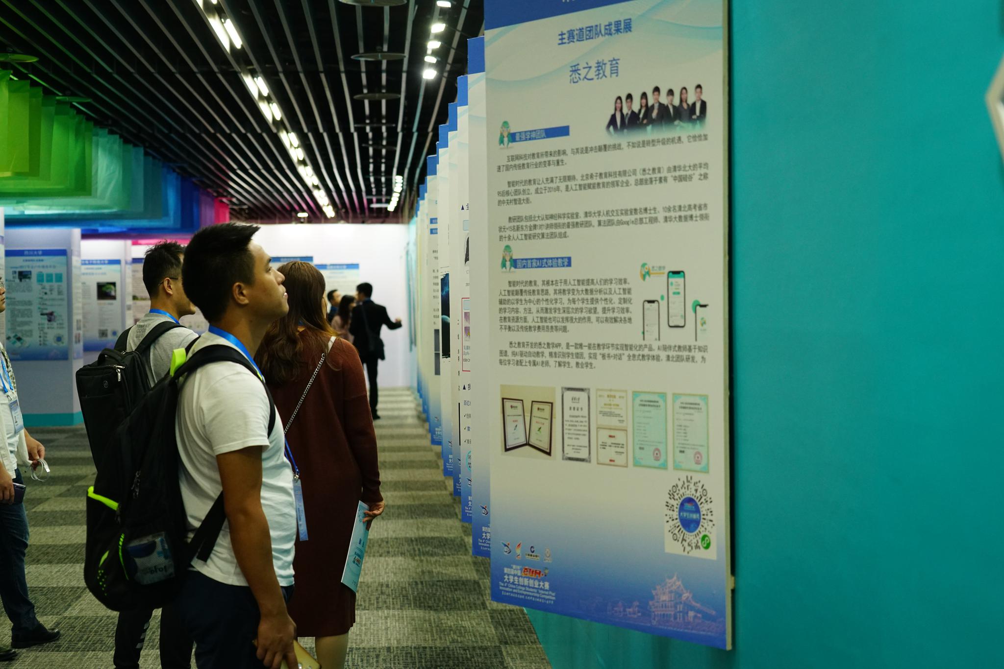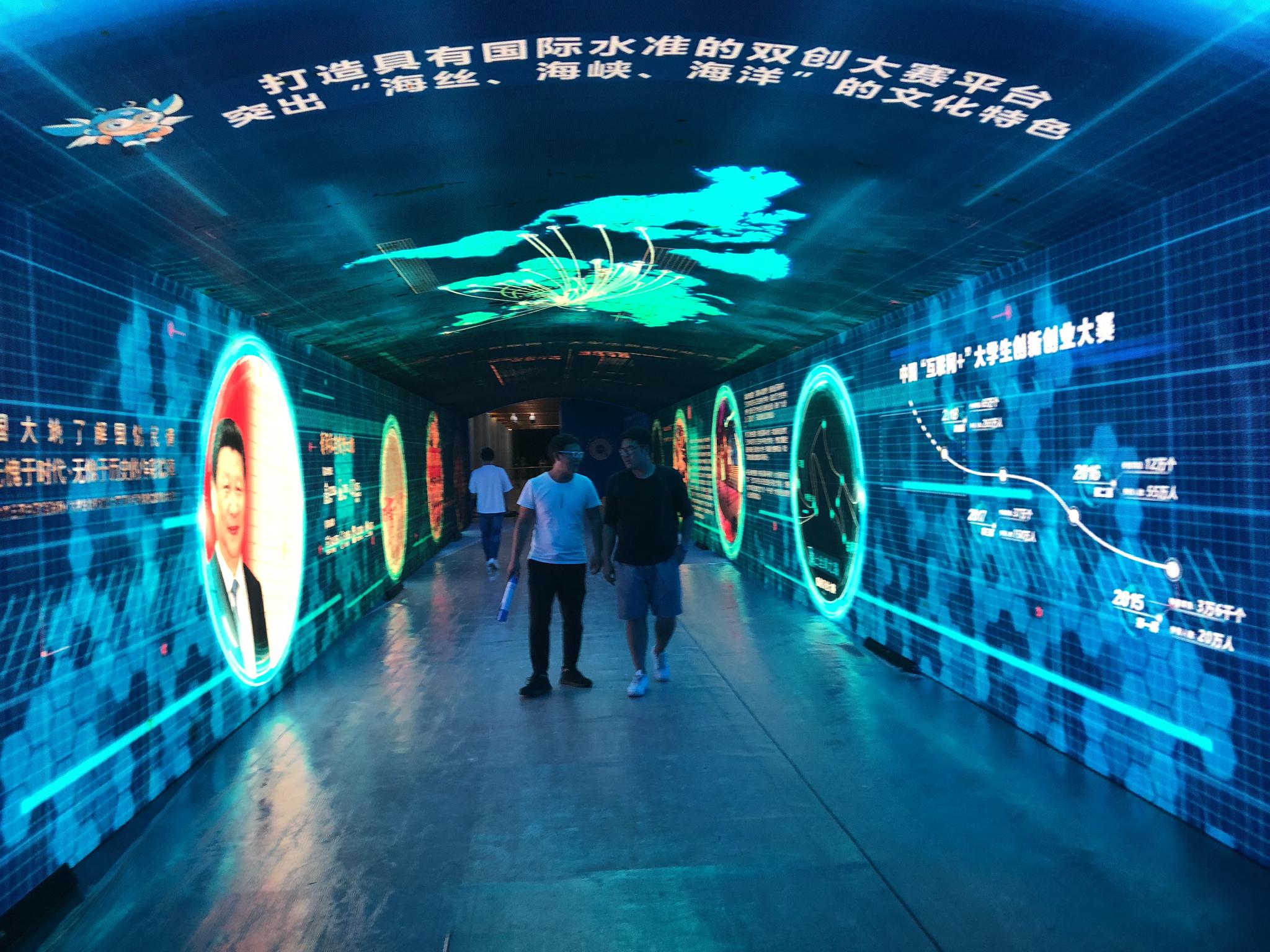 责任编辑:陈浪 体验创意产品的魅力 打开“大学生创客秀”微信小程序,项目尽在手中。 作为第四届中国“互联网+”大学生创新创业大赛同期举行的活动之一,10月13日,“大学生创客秀”在我校思明校区环芙蓉湖区域展出,创客秀围绕“青年创客秀,秀出新精彩”的主题,重体验、强互动、多时段、全角度地展示国内各省、市、自治区教育厅及国内外高校在创新创业教育改革方面取得的成果,为各参赛团队提供了展示平台,搭建起参赛团队与投融资机构沟通的桥梁。 整个活动区包括“项目及地方成果展区”“创意产品体验区”“投融资洽谈区”“创客风采展区”“投融资机构展区”“时光隧道”“百校墙”7个部分,其中,项目及地方成果展区展出了省、市、区创新创业教育成果、入围本届赛事总决赛金奖争夺赛的150件项目、20件台港澳项目、60件国际赛道项目和“青年红色筑梦之旅”成果。创意产品体验区则采取展出实物的形式,全面反映了在“互联网+”的背景下,制造业、信息服务业、社会服务、公益创业、农业、文化创意等产业的创新创意。 创客秀活动将持续到10月15日。 “时光隧道”全面展示历届“互联网+”双创大赛取得的丰硕成果。