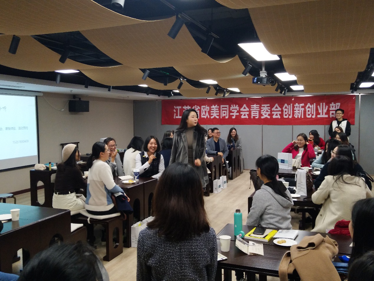 江苏省欧美同学会青委会秘书长李莹对青委会相关情况进行了详细介绍,让众多新进海归青年了解到组织的职能和发展方向,更进一步加深了解促进凝聚力。 11月18日上午,江苏省欧美同学会(江苏省留学人员联谊会)青年工作委员会(以下简称青委会)创新创业部组织策划的《遇见更好的自己~创业分享会》特别活动在宁举办。本次活动诚邀众多优秀创业导师嘉宾、创业政策解读嘉宾、高级形象礼仪培训师给我省青年海归人群开展相关指导和培训,旨在为更多在创业路上、职场当中打拼的青年人提供一个互帮互助、学习交友、拓展眼界和思维的机会。