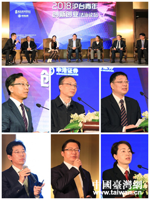 “2018沪台青年创新创业法治论坛”在上海举行。(图片来源:上海市台办) 中国台湾网12月4日上海讯 由国务院台办法规局指导,上海市台办支持,国浩律师事务所、申港证券股份有限公司主办,上海海峡两岸法学研究中心协办的“2018沪台青年创新创业法治论坛”,12月1日在上海举办。国台办法规局、上海市台办负责人、台资银行业、企业家、两岸创业创新人士、证券业、法律界的代表近300人与会,就“青年创业·法治护航”主题作探讨和交流。国台办法规局副局长唐正瑞、上海市台办副主任王立新、国浩律师事务所首席执行合伙人吕红兵致辞。申港证券股份有限公司总裁刘化军、长宁区法院副院长金练红、康师傅集团法律顾问黄台英分别就大陆资本市场及台资企业在内地上市、台湾同胞合法权益维护、两岸青年创新创业法治环境发表了主旨演讲。 论坛设置了六个主题,并做分别论述。上海社科院台湾研究中心主任盛九元、台湾中国经济企业研究所所长柯玉枝就“青年创业与惠台措施”做了解析。汉理资本董事长、A轮学堂院长钱学锋集十数年风险投资的经验,传授了“青年创业与风险投资”的心得。上海市律师协会基金专业委员会副主任、国浩律师(上海)事务所主任李强,普华永道会计师事务所合伙人庄浩,中企华资产评估有限公司执行总裁高文忠则从法律、审计和资产评估的视角对“青年创业与融资上市”作了研析。广东省律协知识产权专业委员会副主任、国浩律师(深圳)事务所合伙人谢湘辉围绕“青年创业与知识产权”做了阐述。上海市台办协调处负责人傅泉胜、金茂律师事务所合伙人施君就“青年创业与权益保障”发表了演讲。速快输出股份有限公司董事长徐宗逸、吉名国际股份有限公司董事长高振坤、上海麦可将文创园区总经理连泰瑞、COCO都可茶饮上海浦东区总经理周荣堃、冠棠教育科技(上海)有限公司董事长吴佩和溯洄(上海)设计咨询有限公司董事长徐霍成在圆桌讨论环节就“青年创业与放飞梦想”展开了交流。