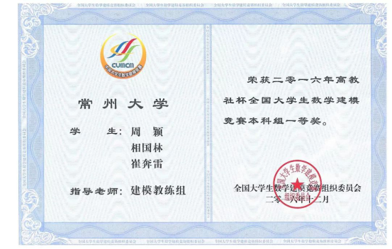 高教社杯全国大学生数学建模竞赛本科生一等奖