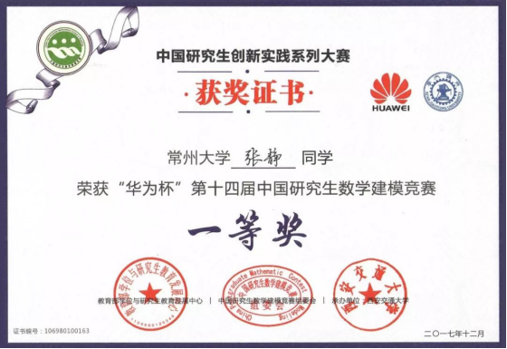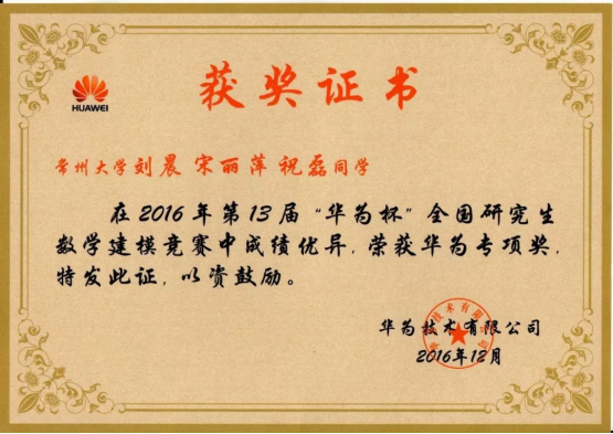 全国研究生数学建模竞赛“华为专项奖”证书