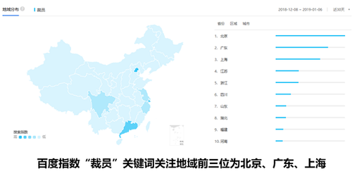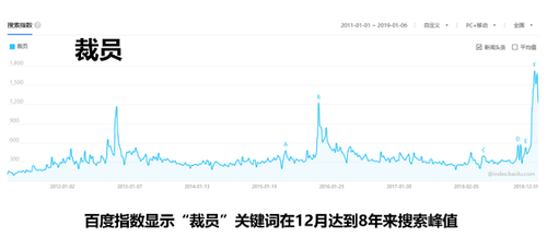 从某种意义上而言,在面对被裁对象的时候,专业的裁员公司不仅拥有着处理这些问题的丰富经验和科学的心理引导方式,还拥有着更多的人脉资源,也许就有着一份被裁人员刚刚合适的工作机会,此举也让这个裁员残酷的现实,变得温暖一点。 全球经济复苏乏力,企业提前“瘦身过冬” “我绝不会让自己的孩子将来成为留守儿童。”曾经的留守儿童长大后,为下一代许下爱不会缺席的诺言。当返乡成为创业就业的更好选择,这将不仅是经济发展向农村的延伸,更是家庭团圆的温暖、乡土文化的回归。 另据了解,返乡创业的人员(尤其是农民工),他们往往是小微经营主体,就像毛细血管一样能够深入到最偏僻的角落,对就业增收、脱贫致富有着极强的带动性。如今国家对饲养,种植业也有补助政策,农民创业又有了一道保护屏障。 据百度搜索指数的统计显示,“裁员”关键词在2018年12月16日达到了自2011年起8年内的搜索指数最高峰值——1725。百度资讯指数亦显示,2019年1月2日“裁员”关键词资讯指数达到30天内峰值2,008,192,近一个月“裁员”关键词日均值为149,483,同比增长1338560%,再创新高。 原本年初的裁员就让人慌张,而经济下行的压力,更加深了裁员潮带来的不安全感。 百度指数中的经济走势:突遭裁员的80后与回乡创业的新生活 2019-01-08 19:04 网络 来源:网络 作者: 网络 编辑: 王爵0购买 有知乎在职的员工则透露,自己根据公司群人数测算,公司群里的离职率在20%左右,该员工进一步分析称,网上的谣言四起,多半是赔偿没拿那么多的校招生或者实习生在抱怨; 此外,来自国家发改委数据显示,2017年,全国返乡创业人员超过740万,其中返乡农民工占72.5%。 而在京东方面,其试用期员工存活率偏低,更有甚者,入职一个月甚至十天就被裁员; 这也意味着,作为职场中坚力量的80后,正在经历人生中最难忘的“转折”——临近过年突然被裁、年终奖为0、工作难找、失业后的房贷、车贷等问题让他们更加“焦虑”。 无独有偶,据美国CNBC网站报道,今年1月3号,瑞银在一份经济报告中指出,预计全球经济增长将在2019年放缓至3.6%,低于2018年的3.8%。 实际上,受全球经济复苏乏力影响,裁员潮已在制造业、金融业、汽车、房地产等多个领域内持续蔓延,这些传统企业、国际巨头的日子也并不好过。 关键字: 百度指数