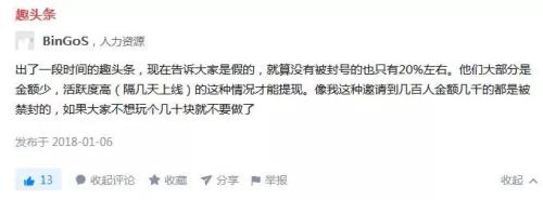 出了一段时间的趣头条,现在告诉大家是假的,就算没有被封号的也只有20%左右。他们大部分是金额少,活跃度高(隔几天上线)的这种情况才能提现。像我这种邀请到几百人金额几千的都是被禁封的,如果大家不想玩个几十块就不要做了。