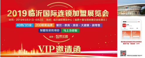 2019临沂国际连锁加盟展览会,定于5月31日-6月2日于山东临沂国际博览中心举行。本届展会由易加盟|连锁加速共享平台主办,展览面积达12000平米,参展品牌覆盖餐饮、教育、美容大健康、新零售及服务四大行业,40主流细分业态,200+热门品牌。预计参观超过3万人次,是4月份之后山东境内唯一也是规模最大的国际连锁加盟展览会,亦是主办方易加盟吹响“连锁渠道下沉战略”集结号的第一站。