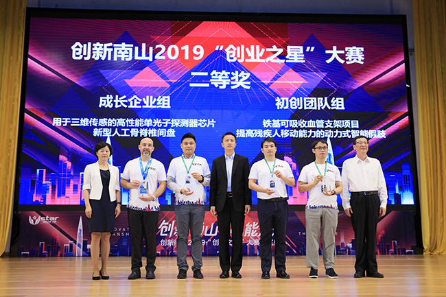 本届创新南山“创业之星”大赛由深圳市人民政府指导,深圳市科技创新委员会、深圳市南山区人民政府主办,深圳市南山区科技创新局、深圳报业集团深圳商报社、深圳市汇通金控基金投资有限公司承办,是一项立足南山、面向全国、辐射全球的大型创业企业与项目的选拨活动。 在“创新南山赋能未来”主题论坛环节,全球化竞争与创新管理学家、Al Bussiness Lab联合创始人吴霁虹作“如何加速粤港澳大湾区的技术新融合与企业创新”主题演讲。 作为第二十一届中国国际高新技术成果交易会重大活动之一,16日下午,2019年总决赛颁奖典礼在南山会堂举行。南山区区委书记王强在致辞中表示,创新是南山最鲜明的特质,南山因改革开放而生,因创新发展而强。创业之星大赛从2008年开始,已经走过12个年头,今年更是硕果盈收。据了解,创新南山“创业之星”大赛已连续举办十二届,成功举办离不开政府的支持、引导。大赛硕果累累,南山区政府累计投入6000万元奖金,这些大赛项目贡献GDP逾200多亿元,投入产出比超过330倍。 南山是中国最具硅谷气质的城区,华为从这里走向国际,中兴、大疆从这里成长为行业的领导者。创新南山“创业之星”大赛是科技服务供给侧改革最闪亮的“中国样本”。众多“独角兽”企业——光峰光电、大疆创新、奥比中光都曾在大赛初露头角,上市公司茂硕电源、盛弘电气、德方纳米等也都在大赛后赢得资本市场的青睐。 在创新南山2019“创业之星”大赛总决赛中,共有12个项目获奖。初创团队组5G通信射频芯片项目荣获一等奖;铁基可吸收血管支架项目、提高残疾人移动能力的动力式智能假肢荣获二等奖;纳米合金管材中国开发技术、面向终端的低功耗人工智能芯片、100G/400G AWG芯片光引擎荣获三等奖。成长企业组面阵型量子计数乳腺机产业化荣获一等奖;用于三维传感的高性能单光子探测器芯片、新型人工骨脊椎间盘荣获二等奖;高精度3D视觉轮廓测量仪、Populele2智能尤克里里、量产型商业微小卫星标准平台研制及产业化项目荣获三等奖。 颁奖典礼上,王强、黄湘岳等先后为获奖者颁奖,南山区委书记王强给一等奖团队颁完奖后,还立即为两位获奖企业代表发名片,体现尊重企业和服务企业的优良作风与务实精神。
