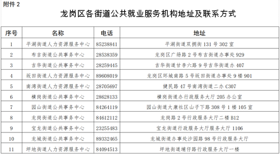附件2:龙岗区各街道公共就业服务机构地址及联系方式