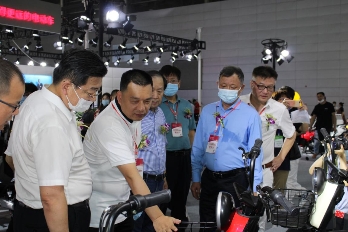 (新日股份董事长张崇舜进行开幕式致辞) 开幕式结束后,中国轻工业联合会党委常委,中国自行车协会理事长刘素文等领导一行来到新日展位上。作为超战略全球发布会后首次亮相,新日股份此次参展备受业内关注,新日展位现场气氛热烈,人气爆棚。