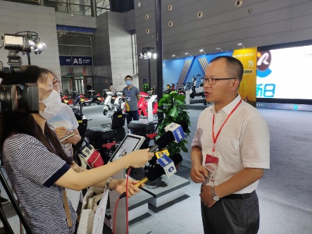 (新日股份董事会办公室主任、新闻发言人陈开亚接受记者采访) 在展会现场,新日股份董事长张崇舜为大家讲解了新日汽车级锂电技术以及MIKU Super等新品的核心竞争卖点,创新性的研发方向以及强大的性能技术引得在场嘉宾纷纷称赞。