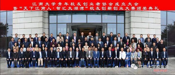 参加会议人员合影留念 10月20日,江南大学青年校友创业者协会(以下简称“青创协会”)成立大会暨“天下江南人·智汇太湖湾”校友创新创业大赛颁奖典礼在江苏无锡举办。 会上公布了青创协会的组织结构名单并颁发了聘书。聘请了46位知名企业家担任创业导师。弘成科技发展有限公司(以下简称“弘成科技”)丁向东先生受邀与会,并做为创业导师代表做了精彩分享。