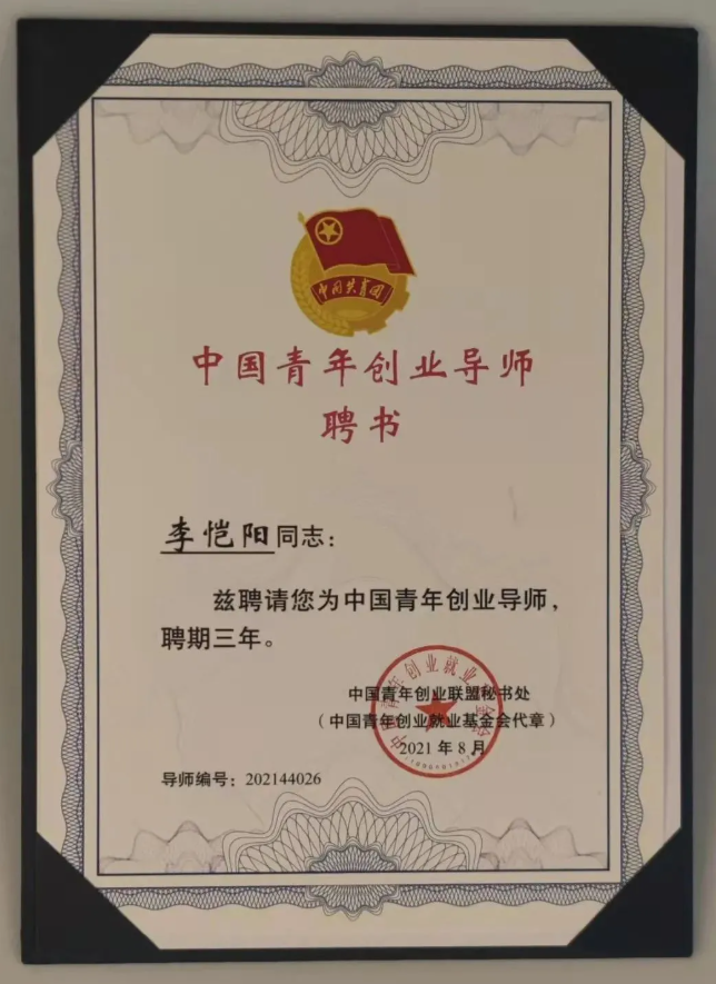 为落实团中央书记处关于深化共青团服务青年创业工作的有关要求,着力帮助创业青年解决实际困难,进一步面向基层、下沉资源,实现服务青年创业工作的重点、资源和方式转变,为创业青年提供导师服务,团中央中国青年创业就业基金会在全国甄选在行业内有影响力、有社会责任感的成功企业家、行业带头人为中国青年创业导师。 经推荐、审核、公示,2021年10月中润集团董事长李恺阳正式被聘为团中央中国青年创业就业基金会的第五批中国青年创业导师。