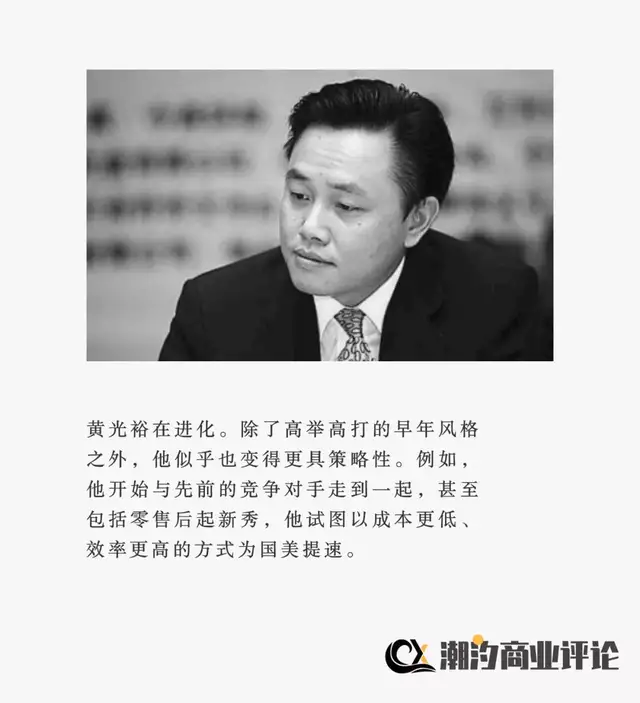 【来源 / 商业人物】 01 多年之后,曾经的“光头硬汉”黄光裕,以满头茂密黑发的形象重新回到了零售牌桌上。 他打量一下四周,有熟悉的老朋友,有陌生的新玩家。像一个久疏战阵的老将军,他以最敏锐的洞察分析着场上局势,准备进入下一轮厮杀。 黄光裕是中国零售行业绕不过去的一个人物。由他一手创立的国美商业帝国,曾经在整个家电行业掀起巨大波澜,至今仍能感到余波。作为一个白手起家的潮汕商人,黄光裕一度成为那个年代从草莽爬至巨富的代表人物之一,留给外界太多评说空间。如今,他打算再战新江湖,国美也迎来它的新时刻。