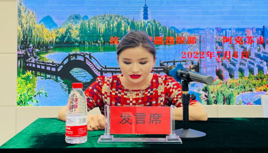 7月6日,由杭州市援疆指挥部、阿克苏市妇联合举办的“姐妹帮扶·杭阿共富”女创业者们赴杭经验分享会在千鹤妇女精神阿克苏实践基地举行,来自阿克苏市各行各业女性创业者代表参加。