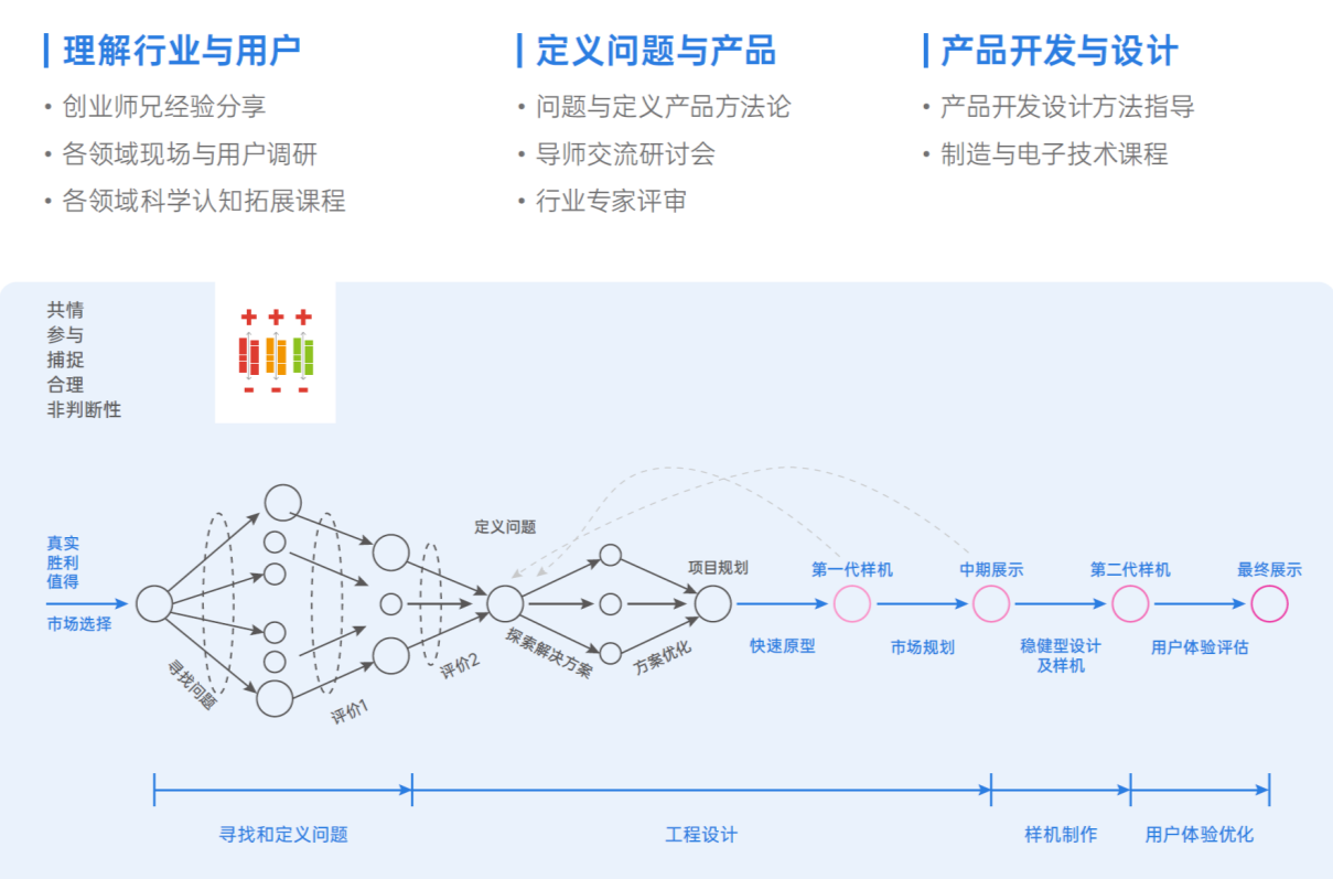 未来技术学院(研究院)项目制课程设计模式(央广网发 未来技术学院供图) 其次是以项目驱动学习,实现从课程端到产品端的转化。学院每学期开设4门核心课程,本科四年完成约25个项目,所有项目均由2名以上教师共同指导。 学生4-5人一组,通过市场调研掌握行业和用户痛点,发现和定义问题,提出产品设计方案,运用跨学科知识、技术和各种软硬件工具快速验证、迭代和优化产品,最后整合供应链资源快速推向市场。 其三是团队化教学,组建跨专业的结构化校企“混编”导师团队,打破传统高校各门课程‘画地为牢’、教师单打独斗的局面。 通过将专业课程分成若干单元(课程群)的形式,导师团队根据学习成果和目标对单元内各模块课程的知识点、能力点、教学内容、项目、资源进行重构设计,解决课程设计与课程教学之间“两张皮”的问题。 其四是以成果为导向的评价体系。与传统高等院校以交作业、写论文来验收学习成果的方式不同,未来技术学院(研究院)检验学生学习效果及教师教学成果的依据是市场成果。 学生通过开展创新实践、发表论文、获得专利、参加竞赛和自主创业等方式,可以申请免修课程、置换课程、替代学分。同时,学院实施弹性学制,放宽学生修业年限,允许调整学业进程、保留学籍休学创新创业。 据悉,学院鼓励学生将好的构想落到实处,对于具有市场接受力的项目,学院将予以大力支持,学生可依托项目创办公司、依据市场反馈动态调整项目及学习方向,以此为社会创造更大的价值。 为此,学院(研究院)正积极探索前沿技术的工业转化模式,建立“端”到“端”的硬科技创新创业支撑体系—— 其中包括:联合供应链建立产品试制中心,为科研团队和中小微企业提供设计、试制、验证、检测等快速验证服务;整合粤港澳大湾区制造业供应链体系,建立供应链管理中心,保障零件采购、样机生产、批量生产;联合清水湾创业投资(合伙企业)基金等创投资本,提供宣传推广、导师指导、种子基金等金融服务。 【结语】 作为硬科技创新创业的核心力量,学院派创新创业是创新驱动增长战略下至关重要的一环。 李泽湘教授及深圳职业技术学院未来技术学院(研究院)正在开展的新工科教育探索,或许能为时光深处的“科创之问”给出新时代的响亮回答。 (责任编辑:admin) |