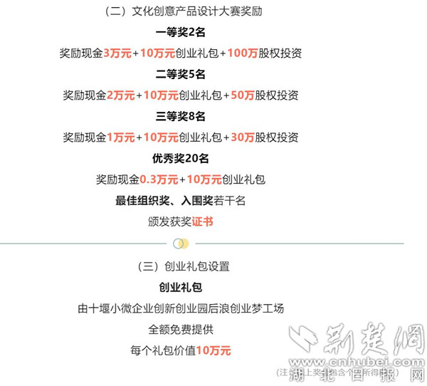 奖项设置截图。通讯员供图 奖项设置截图。通讯员供图 荆楚网(湖北日报网)讯(通讯员 李家亮、王娟)9月30日,十堰“历史名人活化工程”和“历史文化活化工程”组委会办公室联合中共十堰市委宣传部对外发发布,共同举办十堰“历史名人活化工程”和“历史文化活化工程”文化产业创业项目大赛暨文化创意产品设计大赛。 据了解,此次活动的主题为“传承历史文脉 智造文化经典”,由十堰“历史名人活化工程”和“历史文化活化工程”组委会办公室主办,十堰文旅体投资发展集团有限公司、十堰小微企业创新创业园后浪创业梦工场承办。十堰日报社、十堰广播电视台、十堰市人力资源和社会保障局、十堰市文化和旅游局、共青团十堰市委员会、十堰市招商服务中心协办。 本次大赛的活动流程为:10.1至11.15为作品征集时间,参赛者可通过大赛官网 ()进行作品投递;10月10日举行新闻发布会暨启动仪式;11月19日至11月20日对参赛作品初评;11月21日至11月26日开启网络投票;11月25日路演培训;11月26日、27日为路演和终评;12月2日颁奖签约。 据悉,参与此次活动的参赛者可提交多个项目,参赛作品文件名存储为:“项目名称+单位/作者姓名+电话”。文化产业创业项目参赛作品需提供设计方案电子文件(PPT格式,40P以内),设计方案须包含设计理念、市场概况、项目定位、投资价值、创始团队、实施计划、市场运营、融资预算等内容。文化创意产品设计参赛作品鼓励参赛者提供作品实物或相关实体模型。非实物参赛作品,每件作品不少于3张展示图,应包含效果图、三视图、结构图等,JPG格式高清图片(300dpi),附产品解说。 此次参赛作品必须为原创,不得侵犯他人知识产权。如作品发生知识产权或版权纠纷等,组委会将取消其参展资格,并由投稿人承担相应后果。作品邮寄地址:湖北省十堰市茅箭区北京北路83号十堰体育中心,十堰文旅体投资发展集团有限公司,联系电话:0719-8011188,15507282895,联系人:蒋女士。 【纠错】编辑:雷杉 (责任编辑:admin) |