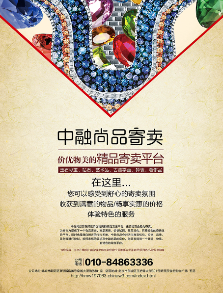 (3)代销人不负担风险与费用,一般由寄卖人垫资,代销人不占用资金,可以调动其经营的积极性。 个人、厂家寄卖,珠宝鉴定服务,珠宝定制服务 中融尚品专业、诚信、值得信赖,寄卖好平台,首选中融尚品!!! 经营品类:珠宝、钟表、奢侈品、文玩艺术品、杂项等 中融尚品业务种类: 寄卖的优点特色 (2)寄卖方式是凭实物买卖。货物与买主直接见面,利于促进成交。 寄卖是一种先发运后销售的现货买卖方式。以寄卖方式销售,可以让商品在市场上与用户直接见面。按需要的数量随意购买,而且是现货现买,能抓住销售时机。所以对于开拓新市场,特别是消费品市场,是一种行之有效的方式。 “中融尚品真诚为你服务”: