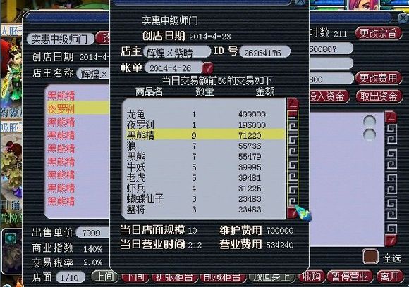 之前听别人说开店多赚多赚,一天几百万,最少都有200W+的收入,我信了。。结果收了个中级师门店。花费800W。。结果,悲剧的来了. 到处打广告,勤快的补店,可TM的,一天只能卖出50W左右的宠。。可一天维护的费用跟税收就要160W+了!!!!已经连续亏损两天了。。怎么破. 楼主159DT(准备转神木林了),无聊学了14及猎术。。目前就卖这几个宠,价格是7999。。感觉不高啊,还有折扣。。谁知道一天还是只能卖那么几十万。。 开了百分百储备金,要求100W。。可自己连卖出50W都很困难。。每天找小号买宠补够100W。那也很坑爹啊。。刚开始买的时候那卖家还说:“只要你勤快补店,一天200W不是问题”,我去,现在找到ID肯定杀他. 各位有意思想还宠店的,看了我的帖子请三思了。楼主刚买的店也不愿意那么快就放弃,再坚持一段时间看看。。 可各位看到了吗?那龙龟跟夜罗刹,50W+20W,是楼主开别的号去买的。。等于营业额只有105-70W=35W 楼主已经很努力的宣传了,世界,门派,帮忙,当前。。。可为什么营业额就是上不去呢!?今天可是星期六啊,才35W。这坑的。心都碎了 还要继续吗? (责任编辑:admin) |