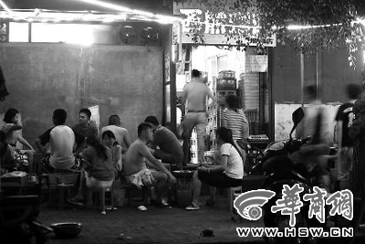 “其实就是将已有名的东西搬到桌面上,然后大家就纷纷效仿了。”“老王涮涮”隔壁的“铁道涮吧钻石店”6月19日刚开业,老板是三个80后年轻人,开店共花了10万元,店面装修比较讲究,室内配有空调,煤炉上还配有小桌子,其中一位姓张的老板称,“红旗串串”其实就是“老奶奶串串”,红旗厂人都知道,但一直没有宣传,今年有人将它放到网络上,大家开始效仿,虽然形式上都一样,但彼此没有任何关系,他觉得“红旗串串”火得快也会死得快,将死在环境卫生上。 昨晚,西安市水文巷,来吃“串串”的人络绎不绝 本组图片由华商报记者 张喆 摄 昨日,记者再次走访发现,西安市其他地区也出现了不少相同形式的串串,自强东路、振兴路、大学东路甚至长安区,都有这种形式的串串,有的有正规店面,有的直接摆在人行道上,无任何证照,菜品也裸露在外没有任何消毒设施,不少还打着“红旗串串”的招牌。 “丑蛋涮涮”隔壁的“老王涮涮”原本是卖烤肉的,他的串串刚开业一周,就是觉得生意好所以才开起来的,底料也是自己配的。 昨日,西安市城管执法局相关负责人称,他们已注意到最近串串很火的现象,这些串串大都晚上经营,很多都摆在人行道上,影响了行人通行。对此,他们已开始着手检查,除了一些审批过的夜市外,对其他的占道经营都将清理取缔。 “串串”发明者