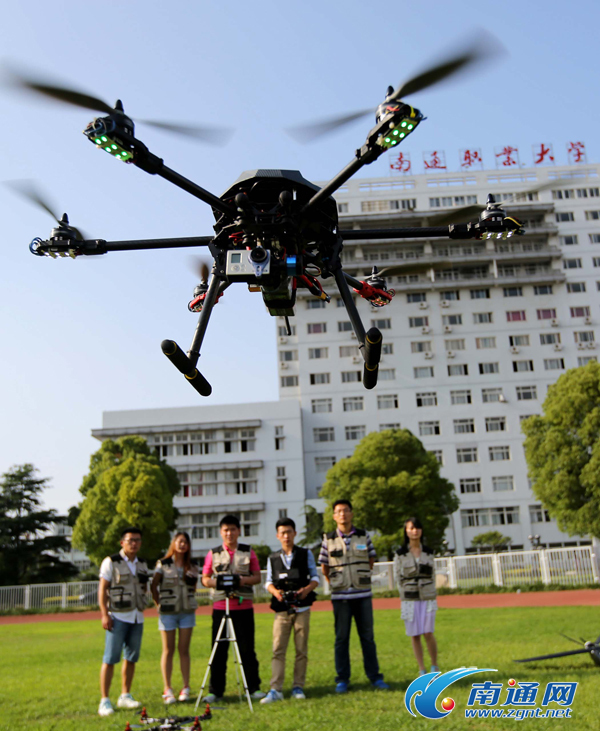 盘旋、升降、悬停、转向……在地面人员的操纵下,随着无人机在空中变换姿势,机身携挂的高清摄像机采集到的画面,通过无线电设备,实时传送到地面的接收系统。日前,记者在南通职业大学校园,目睹了无人机航拍技术的高度智能和先进。 王道榆自制了航拍“无人机”,还为南通电视台和海门市提供过多次公益航拍服务,包括一部公益微电影。“我从小就痴迷飞行技术,我在追逐梦想的道路上,已取得一定的成绩,我还渴望飞得更高。 ”王道榆说。